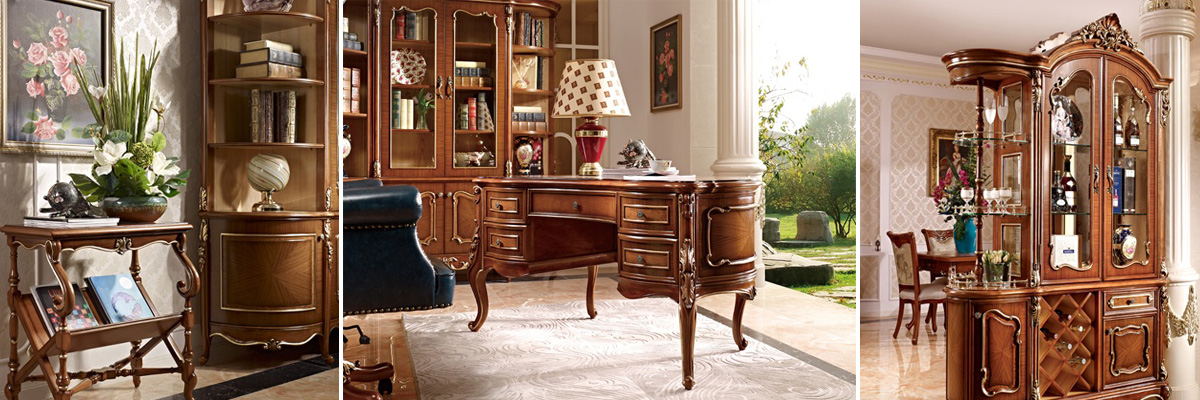 美式家具中常见的是新古典风格的家具。这种风格的家具,设计的重点是强调优雅的雕刻和舒适的设计。在保留了古典家具的色泽和质感的同时,又注意适应现代生活空间。我们可以看到华丽的枫木滚边,枫木或胡桃木的镶嵌线,扭扣般的手把以及模仿动物形状的家具脚腿造型等。